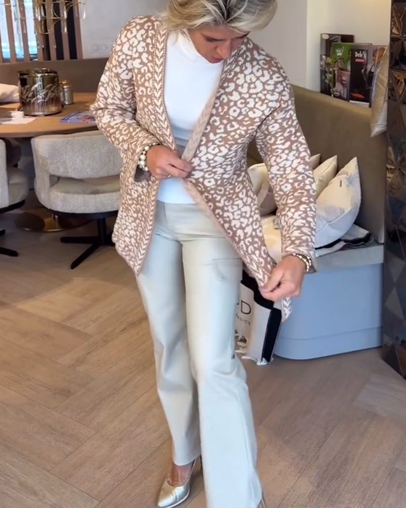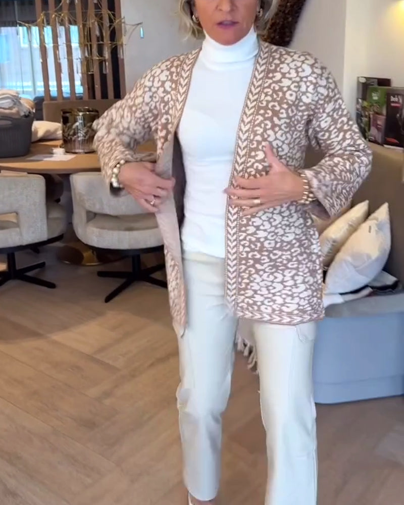 Lössittande Sweatshirt Med Halvblås Och Leopardtryck