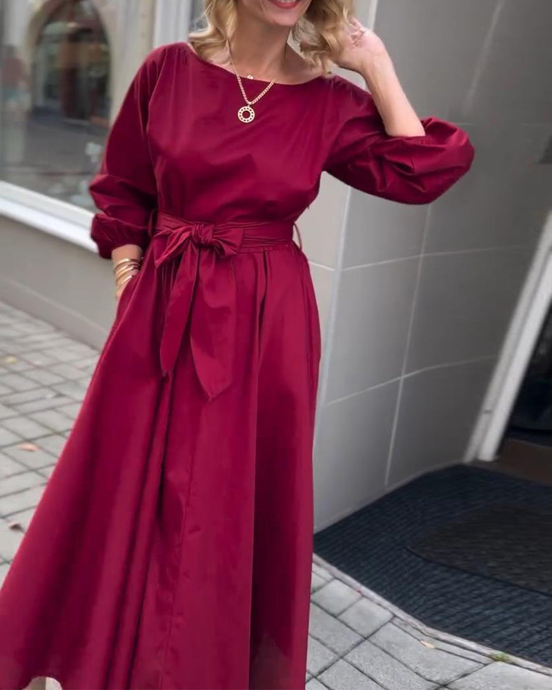 Lössittande Långärmad Klänning I Enfärgad Färg