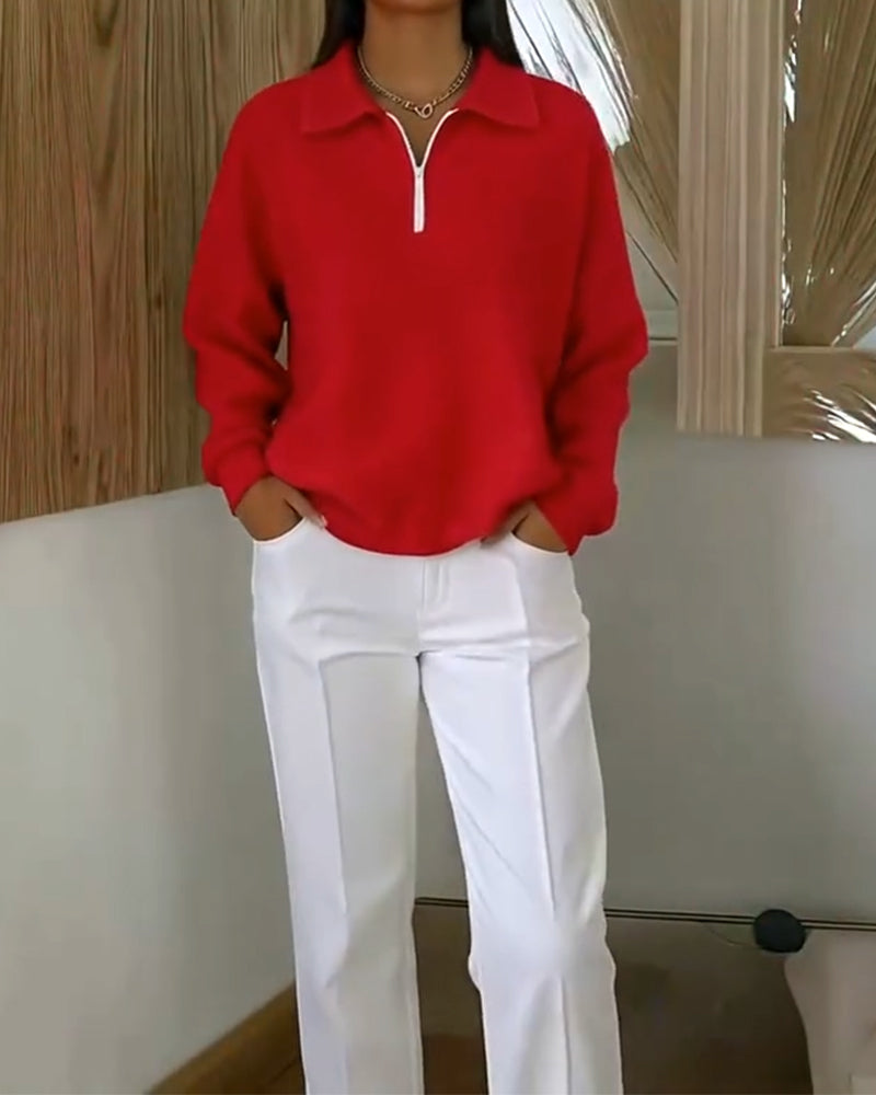 Set Casual Sweatshirt Med Byxor Med Raka Ben