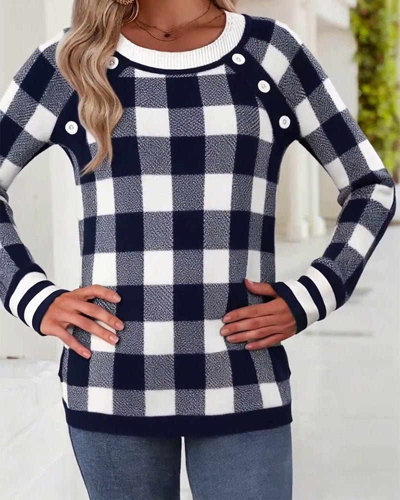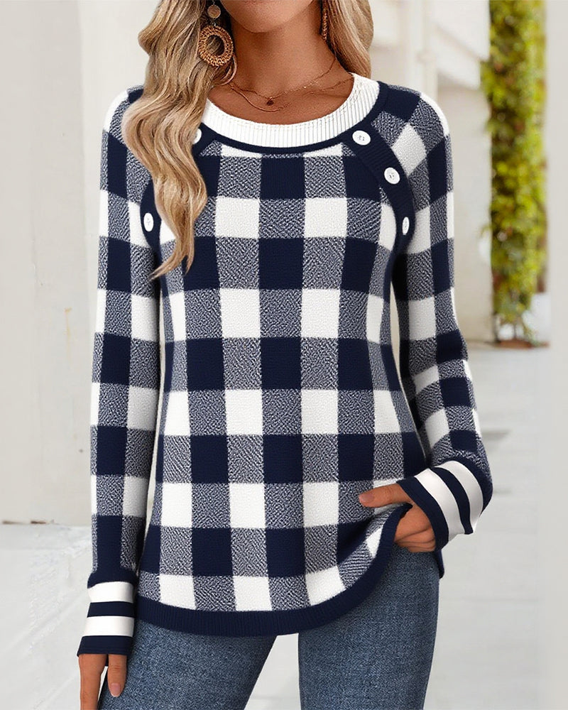Modiga Långärmade Blusar Med Rutigt Mönster