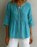 SPECIFIKATIONER Topptyp: Blusar Stil: Enkel Material: Bomullsblandningar Tillfälle: Dagligen Urringning: V-hals_V Mönstertyp: Enfärgade Typ av ärm: Vanlig ärm Ärmlängd: 3/4 ärm Passform typ: Vanlig Säsong: Vår,Sommar Detaljer: Urgröpande Paketet innehåller: 1 x Blus STORLEKSTABELL(cm) Storlek Byst Längd S 97 65 M 101 66.5 L 105 68 ...
