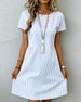 Klänning Randig Crew Neck Cinched Midja Kort Ärm