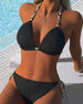 Bikini Texturerad Leopardtryck Patchwork Halterneck