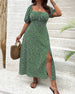 STORLEKSTABELL(cm) Storlek Byst Midjeomkrets XL 106 82 1XL 112 88 2XL 118 94 3XL 124 100 4XL 130 106 5XL 136 112 💗Släpp loss din djärva sommarstil med vår Plus-size klänning med kort ärm, slits och blommönster. Denna uppseendeväckande design har en vågad slits som framhäver dina kurvor medan det livfulla blommönstret kräv...
