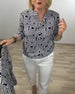 Skjorta Geometrisk Halv-Öppen Krage Tredje-Kvart Ärm