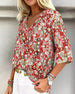 Blus Blommigt Tryck V-Hals Tredje-Kvart Ärm