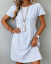 SPECIFIKATIONER Stil: Enkel Material: Denim Klänningstyp: Skiftklänning Klänning längd: Knälängd Urringning: Slag Mönstertyp: Enfärgade Typ av ärm: Vanlig ärm Ärmlängd: Kortärmad Detaljer: Ficka Passform typ: Vanlig Säsong: Vår,Sommar Tillfälle: Dagligen Paketet innehåller: 1 x Klänning STORLEKSTABELL(cm) Storlek Byst Längd S 97 100 M 10...