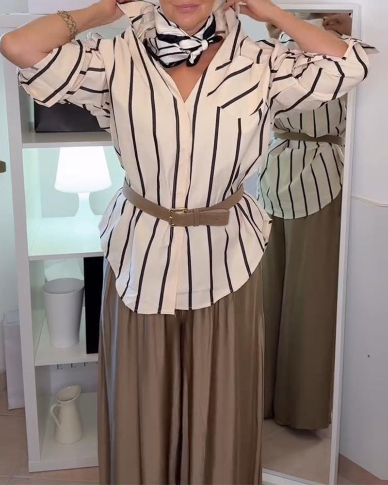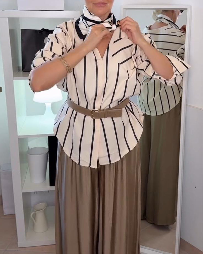 Tvådelat Set Med Rundhalsad Tröja Med Slitskant Och Skjorta