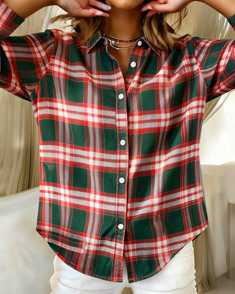 Modiga Långärmade Blusar Med Rutigt Mönster