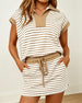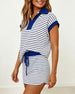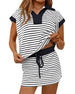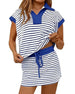 SPECIFIKATIONER Stil: Enkel Topptyp: T-shirt Kategori: Set Material: Bomullsblandningar Mönstertyp: Randig Urringning: Slag Typ av ärm: Vanlig ärm Ärmlängd: Kortärmad Klänning längd: Över knä Midjetyp: Mellan Midja Passform typ: Vanlig Säsong: Vår,Sommar Detaljer: Snöra upp Tillfälle: Dagligen Paketet innehåller: 1 x T-shirt, 1 x Kjol STORLEKS...