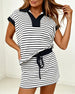 SPECIFIKATIONER Topptyp: Toppar Stil: Enkel Material: Bomullsblandningar Tillfälle: Dagligen Urringning: Rund nacke Mönstertyp: Randig Typ av ärm: Vanlig ärm Ärmlängd: Halvärm Passform typ: Vanlig Säsong: Vår,Sommar Detaljer: Knappar,Dragsko Paketet innehåller: 1 x Topp STORLEKSTABELL(cm) Storlek Byst Längd S 97 68 M 101 69.5 L 105 71 ...