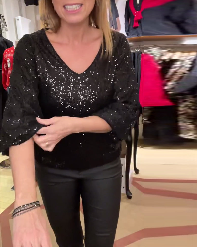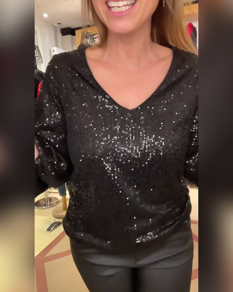 SPECIFIKATIONER Topptyp: Toppar Stil: Enkel Material: Bomullsblandningar Tillfälle: Dagligen Urringning: V-hals_V Mönstertyp: Paljett Typ av ärm: Vanlig ärm Ärmlängd: Långärmad Passform typ: Vanlig Säsong: Höst,Vinter Paketet innehåller: 1 x Topp STORLEKSTABELL(cm) Storlek Byst Längd S 97 65 M 101 66.5 L 105 68 XL 111 69.5 2XL 117 ...