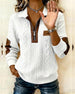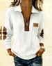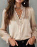 Elegant Enfärgad Blus Med Lapptäcktsdetaljer Och V-Ringning