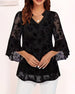 SPECIFIKATIONER Topptyp: Blusar Stil: Chic Material: Bomullsblandningar Tillfälle: Dagligen Urringning: V-hals_V Mönstertyp: Enfärgade Typ av ärm: Flare ärm Ärmlängd: Nio poängs sleeve Passform typ: Vanlig Säsong: Höst,Vinter Detaljer: Genomskinlig Paketet innehåller: 1 x Blus STORLEKSTABELL(cm) Storlek Byst Längd S 92 65 M 96 66.5 L 1...