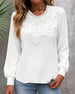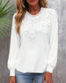 SPECIFIKATIONER Topptyp: Toppar Stil: Chic Material: Bomullsblandningar,Spets Tillfälle: Dagligen,Fest Urringning: Draperad Krage Mönstertyp: Enfärgade Typ av ärm: Vanlig ärm Ärmlängd: Långärmad Passform typ: Vanlig Säsong: Höst,Vinter Detaljer: Lappverk Paketet innehåller: 1 x Topp STORLEKSTABELL(cm) Storlek Byst Längd S 97 65 M 101 66....