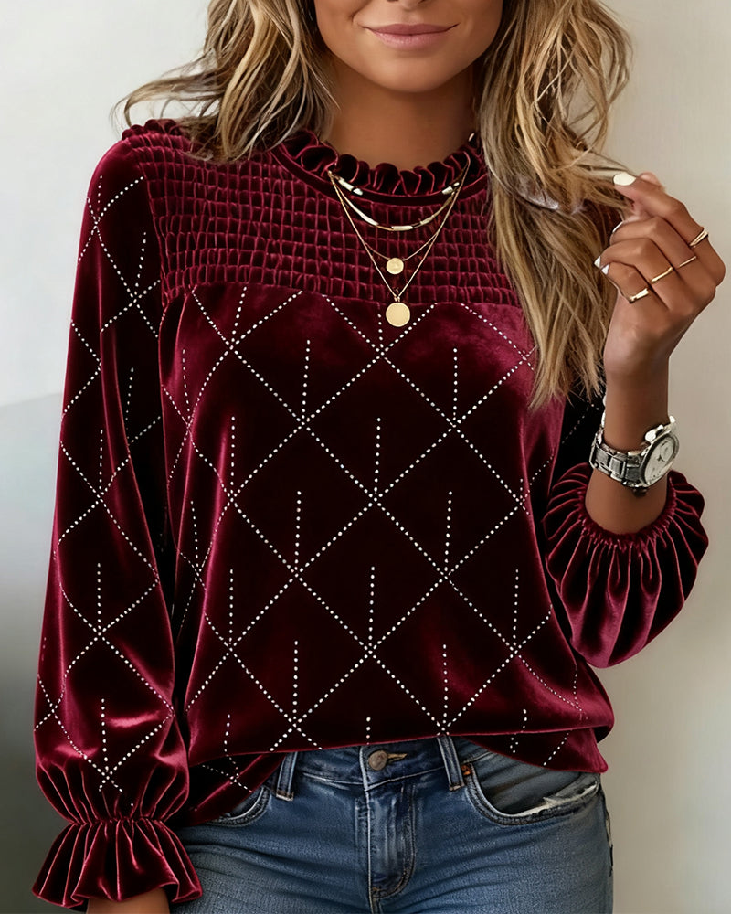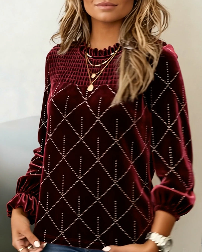 Top V-hals Tribal Tryck Lång Puffärm