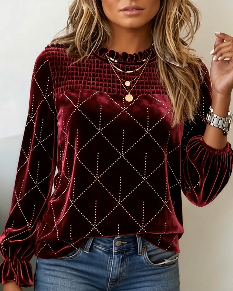 Top Rund Hals Rynkat Velour Långärmad