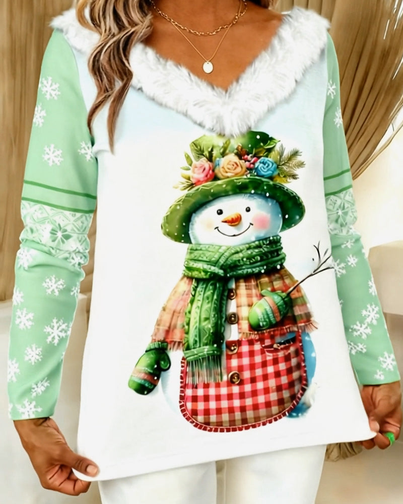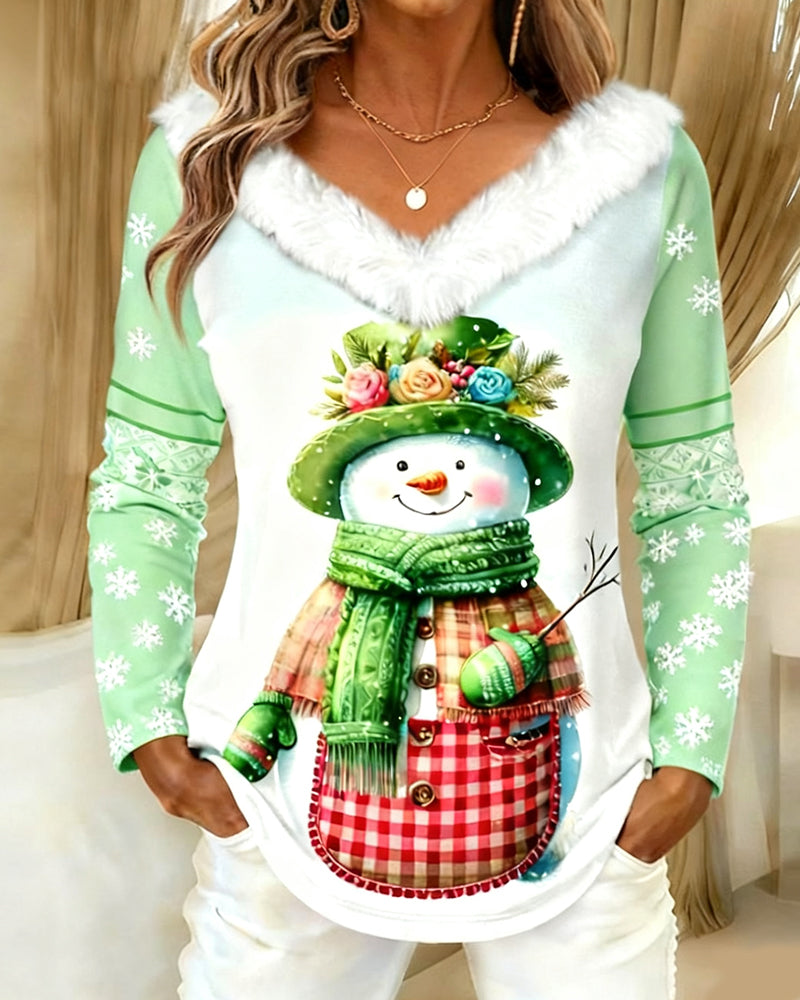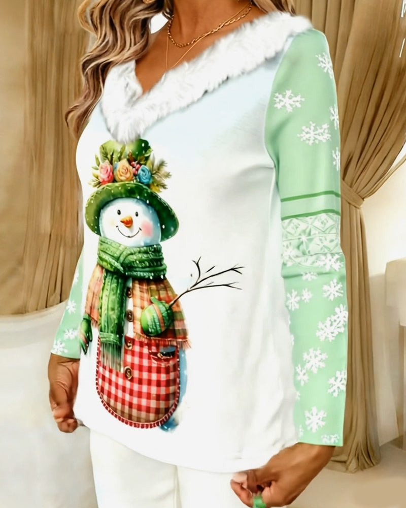 Tryckt Casual Topp Med V-Ringning Och Långa Ärmar