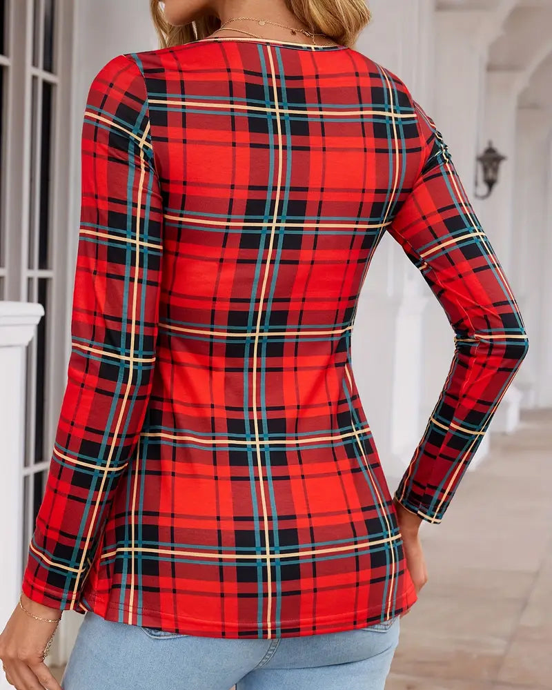 Modiga Långärmade Blusar Med Rutigt Mönster