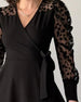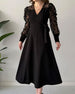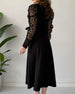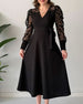 SPECIFIKATIONER Stil: Elegant,Fest Material: Bomullsblandningar,Spets Klänningstyp: A-linje Klänning längd: Midi Urringning: V-hals_V Mönstertyp: Enfärgade Typ av ärm: Puffärm Ärmlängd: Långärmad Detaljer: Lappverk,Snöra upp Passform typ: Vanlig Säsong: Vår,Höst,Vinter Tillfälle: Dagligen Paketet innehåller: 1 x Klänning STORLEKSTABELL(cm) S...