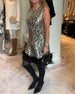 Klänning Plysch Paillettefylld Lappverk Rund Halsringning