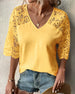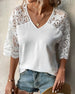 SPECIFIKATIONER Topptyp: Blus Stil: Elegant Material: Spets, Polyester Tillfälle: Dagligen Urringning: V-hals_V Mönstertyp: Enfärgade Typ av ärm: Raglan ärm Ärmlängd: Halvärm Passform typ: Vanlig Säsong: Vår, Sommar, Höst Detaljer: Lappverk, Urgröpande, Spets Paketet innehåller: 1 x Blus STORLEKSTABELL(cm) Storlek Byst Längd Arm...