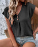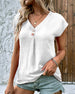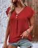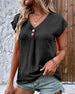 SPECIFIKATIONER Topptyp: T-shirt Stil: Semester Material: Bomullsblandningar Tillfälle: Dagligen Urringning: V-hals_V Mönstertyp: Enfärgade Typ av ärm: Vanlig ärm Ärmlängd: Kortärmad Passform typ: Vanlig Säsong: Vår, Sommar, Höst Detaljer: Knappar Paketet innehåller: 1 x T-shirt STORLEKSTABELL(cm) Storlek Byst Längd Axlar Armläng...