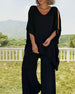 SPECIFIKATIONER Topptyp: Toppar Stil: Enkel Material: Bomullsblandningar Tillfälle: Dagligen Urringning: V-hals_V Mönstertyp: Enfärgade Typ av ärm: Slits ärmar Ärmlängd: Halvärm Byxlängd: Lång Passform typ: Lös Säsong: Vår, Sommar, Höst Detaljer: Ficka, Snöra upp Paketet innehåller: 1 x Topp, 1 x Byxor STORLEKSTABELL(cm) Storlek ...