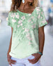 SPECIFIKATIONER Topptyp: T-shirt Stil: Enkel Material: Bomullsblandningar Tillfälle: Dagligen Urringning: V-hals_V Mönstertyp: Blommig, Tryckt Typ av ärm: Vanlig ärm Ärmlängd: Kortärmad Passform typ: Vanlig Säsong: Vår, Sommar, Höst Paketet innehåller: 1 x T-shirt STORLEKSTABELL(cm) Storlek Byst Längd Axlar Armlängd S 92 62 36 ...