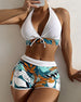 SPECIFIKATIONER Stil: Semester Tillfälle: Semester Material: 15% Spandex, 85% Polyester Urringning: U hals_U Mönstertyp: Tryckt Ärmlängd: Ärmlös Linnetyp: Bikini, Cover up BH typ: Trådlös BH Nedre typ: Shorts Passform typ: Skinny Säsong: Sommar Detaljer: Dragsko Paketet innehåller: 1 x Bikini, Cover up STORLEKSTABELL(cm) Storlek B...