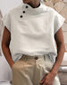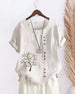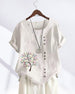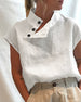 SPECIFIKATIONER Topptyp: T-shirt Stil: Enkel, Kontor Material: Bomull och linne Tillfälle: Dagligen, Arbete Urringning: Ståkrage Mönstertyp: Enfärgade Typ av ärm: Vanlig ärm Ärmlängd: Kortärmad Passform typ: Vanlig Säsong: Vår, Sommar, Höst Detaljer: Knappar Paketet innehåller: 1 x T-shirt STORLEKSTABELL(cm) Storlek Byst Längd Ax...