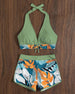 SPECIFIKATIONER Stil: Semester, Sexig Tillfälle: Semester Urringning: Grimma Mönstertyp: Tryckt Ärmlängd: Ärmlös Linnetyp: Bikini BH typ: Trådlös BH Nedre typ: Shorts Passform typ: Skinny Säsong: Sommar Detaljer: Snöra upp Material: Spandex, Polyester Paketet innehåller: 1 x Bikini STORLEKSTABELL(cm) Storlek Byst Midjeomkrets Höft...