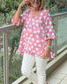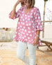 SPECIFIKATIONER Topptyp: Toppar Stil: Enkel Material: Bomullsblandningar, Polyester Tillfälle: Dagligen Urringning: V-hals_V Mönstertyp: Polka prickig, Tryckt Typ av ärm: Vanlig ärm Ärmlängd: 3/4 ärm Passform typ: Vanlig Säsong: Vår, Sommar, Höst Detaljer: Rufsad Paketet innehåller: 1 x Topp STORLEKSTABELL(cm) Storlek Byst Längd A...