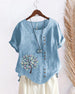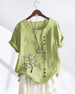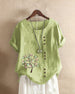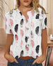 SPECIFIKATIONER Topptyp: Toppar Stil: Enkel Material: Bomull Tillfälle: Dagligen Urringning: V-hals_V Mönstertyp: Tryckt, Fjäder Typ av ärm: Vanlig ärm Ärmlängd: Kortärmad Passform typ: Vanlig Säsong: Vår, Sommar, Höst Detaljer: Ficka, Knappar Paketet innehåller: 1 x Topp STORLEKSTABELL(cm) Storlek Byst Längd Armlängd S 96 66 ...