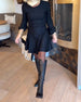 SPECIFIKATIONER Stil: Enkel Material: Nät,Sammet Klänningstyp: A-linje Klänning längd: Över knä Urringning: Draperad Krage Mönstertyp: Enfärgade Typ av ärm: Vanlig ärm Ärmlängd: Långärmad Passform typ: Vanlig Säsong: Höst,Vinter Tillfälle: Dagligen Paketet innehåller: 1 x Klänning STORLEKSTABELL(cm) Storlek Byst Längd S 97 95 M 101 9...