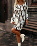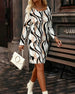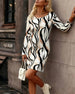 Klänning avslappnad med tryck, rund hals och lång ärm