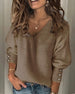 SPECIFIKATIONER: Stil: Casual, Elegant Krage: V-ringad Ärmlängd: Trekvartsärmar Skjorta Längd: Medium Detalj: Spets, knappar Mönster: Blommönster Process: Tryck Passform: Lös STORLEKSTABELL Storlek(cm) Byst Längd Axlar Ärm Manschett S 94 73 36.5 45 31 M 98 74 37.5 46 32 L 102 75 38.5 47 33 XL 106 76 39.5 48 34 2XL 110 77 40.5 49 ...