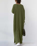 SPECIFIKATIONER Stil: Vardag Material: Bomull, Stickad Klänningstyp: Fodralklänning Klänningslängd: Maxi Urringning: V-hals Mönstertyp: Enfärgad Typ av ärm: Tappad axel Ärmlängd: Långärmad Detaljer: Slits Passform: Lös Säsong: Vår, Höst Sammanhang: Vardag Förpackningen innehåller: 1 x Klänning STORLEKSTABELL(cm) Storlek Längd Bys...