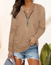 SPECIFIKATIONER Topptyp: Topp Stil: Tillfällig Material: Bomullsblandningar Tillfälle: Dagligen Urringning: V-hals_V Mönstertyp: Enfärgade Typ av ärm: Raglan ärm Ärmlängd: Långärmad Passform typ: Lös Säsong: Sommar, Höst Detaljer: Dragkedja Förpackningen innehåller: 1 x topp STORLEKSTABELL(cm) Storlek Byst(cm) Armlängd(cm) Längd(cm)...