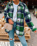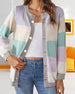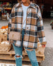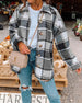 Lös rutig skjortjacka för kvinnor med långa ärmar