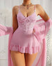 SPECIFIKATIONER Stil: Sexig Material: Polyester Mönstertyp: Enfärgad Säsong: Vår, Sommar, Höst, Vinter Detaljer: Rysch, Spets Paket Innehåller: 1× Klänning Med Axelband, 1× Morgonrock STORLEKSTABELL(cm) Klänning Med Axelband Morgonrock Storlek Under bysten Längd Byst Längd Axlar S 66 75 108 82 40 M 70 76 1...