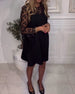 Modernt Långärmad Klänning Med Hundtandsmönster