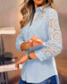 SPECIFIKATIONER Topptyp: Blusar Stil: Enkel Material: Spets,Polyester Tillfälle: Dagligen Urringning: Slag Mönstertyp: Enfärgade Typ av ärm: Vanlig ärm Ärmlängd: Långärmad Passform typ: Vanlig Säsong: Vår,Höst Detaljer: Lappverk Paketet innehåller: 1 x Blus STORLEKSTABELL(cm) Storlek Byst Längd S 97 65 M 101 66.5 L 105 68 XL 111 69.5...
