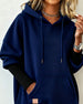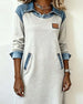 Klänning Med Huva Denim Lapptäcksarbete Fallande Axel