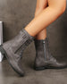 Kängor Dam Rund Tå Sidoblåsning Läder Ortopedisk