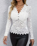 SPECIFIKATIONER Topptyp: Toppar Stil: Elegant Material: Bomullsblandningar,Spets Tillfälle: Dagligen Urringning: V-hals_V Mönstertyp: Enfärgade Typ av ärm: Vanlig ärm Ärmlängd: Långärmad Passform typ: Vanlig Säsong: Vår,Höst,Vinter Detaljer: Knappar,Oregelbunden Paketet innehåller: 1 x Topp STORLEKSTABELL(cm) Storlek Byst Längd S 95 65 M...