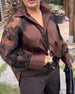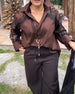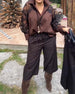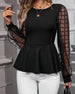 Enfärgad Blus Med Lyktärmar Och Lapptäcktsdetaljer