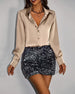 SPECIFIKATIONER Stil: Enkel Material: Bomullsblandningar Klänningstyp: Skiftklänning Klänning längd: Knälängd Urringning: Rund nacke Mönstertyp: Paljett,Enfärgade Typ av ärm: Flare ärm Ärmlängd: Långärmad Passform typ: Lös Säsong: Höst,Vinter Tillfälle: Dagligen Paketet innehåller: 1 x Klänning STORLEKSTABELL(cm) Storlek Byst Längd S 97 10...
