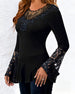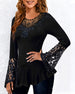 SPECIFIKATIONER Topptyp: Toppar Stil: Enkel Material: Bomullsblandningar Tillfälle: Dagligen Urringning: Rund nacke Mönstertyp: Enfärgade Typ av ärm: Flare ärm Ärmlängd: Långärmad Passform typ: Vanlig Säsong: Höst,Vinter Detaljer: Spets Paketet innehåller: 1 x Topp STORLEKSTABELL(cm) Storlek Byst Längd S 92 65 M 96 66.5 L 100 68 XL 1...