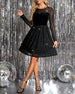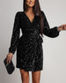 SPECIFIKATIONER Stil: Chic Material: Paljetter,Sammet Klänningstyp: Slå in Klänning längd: Över knä Urringning: V-hals_V Mönstertyp: Paljett Typ av ärm: Lykthylsa Ärmlängd: Långärmad Passform typ: Vanlig Säsong: Höst,Vinter Tillfälle: Dagligen Paketet innehåller: 1 x Klänning STORLEKSTABELL(cm) Storlek Byst Längd S 97 95 M 101 96 L...